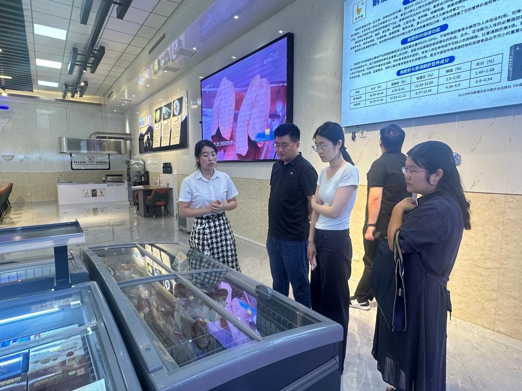 在拥有中华老字号“崔字”牌的瑞福油脂股份有限公司,古老的石磨慢转,小磨香油飘香,实践团师生目睹一粒粒芝麻如何历经匠心淬炼,化作滴滴醇厚的小磨香油,传统工艺的坚守令人动容。步入千喜鹤健康食品产业园、山东晶冠食品有限公司等现代化厂区,则是另一番景象:洁净的生产车间内一尘不染,自动化流水线高效运转,科技为传统食品工业注入强劲动能。在山东尊润圣罗捷食品有限公司,师生深入朗德鹅养殖基地和鹅肝加工车间,详细了解占国内市场70%、世界市场20%、年产值逾80亿元的临朐“鹅肝”产业的发展历程。