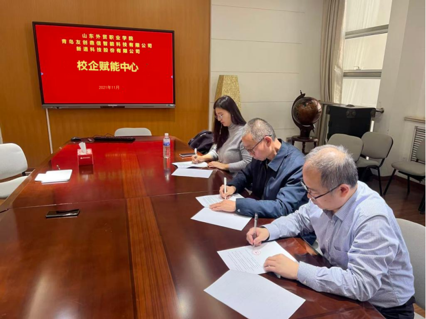 2021年11月,山东外贸职业学院财会金融系与新道科技股份有限公司、青岛友创鼎信智能科技有限公司共同成立校企赋能中心,并签署战略合作协议。